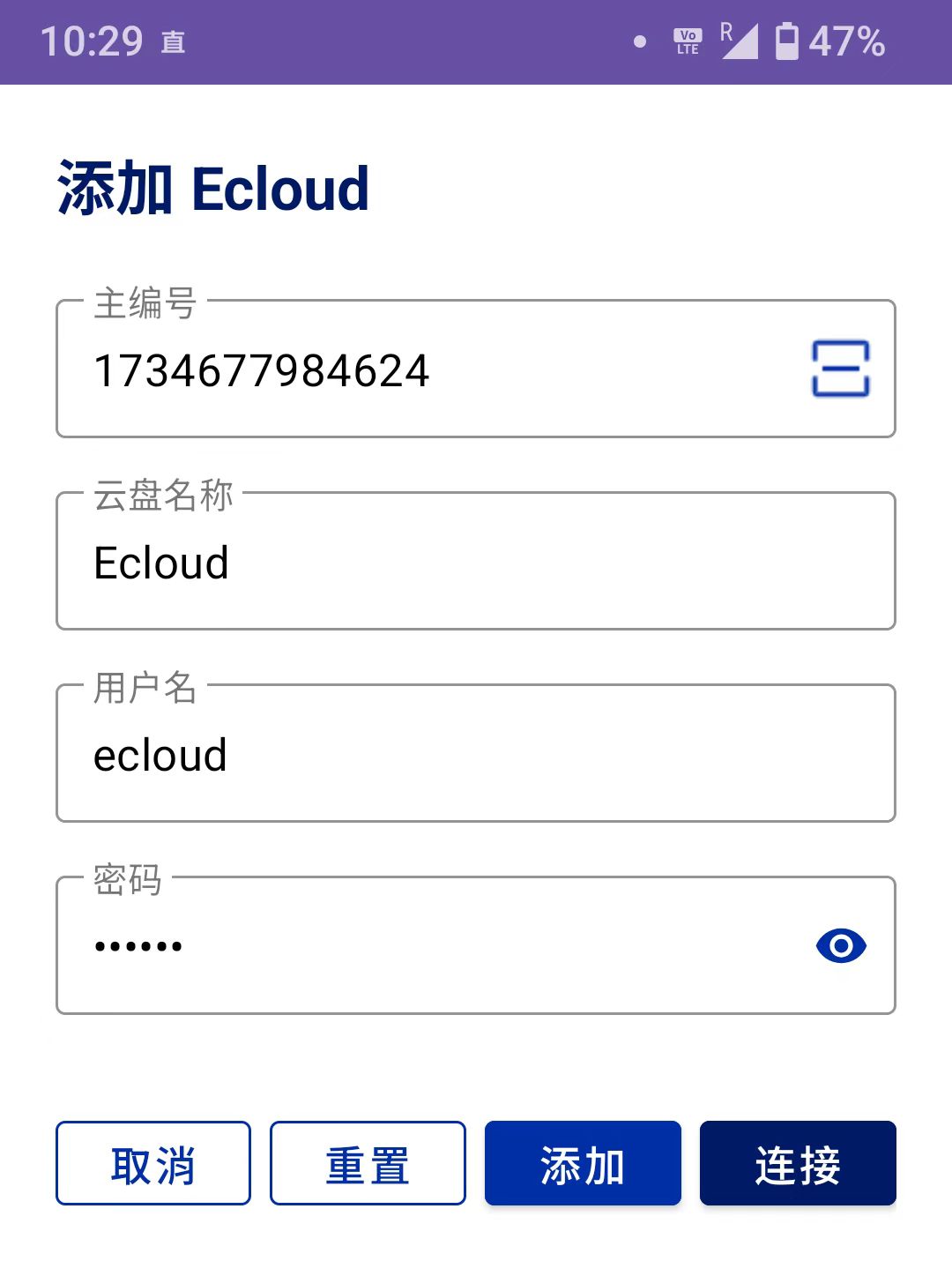- 2.输入设备码 及默认帐号 ecloud 密码ecloud 点击连接